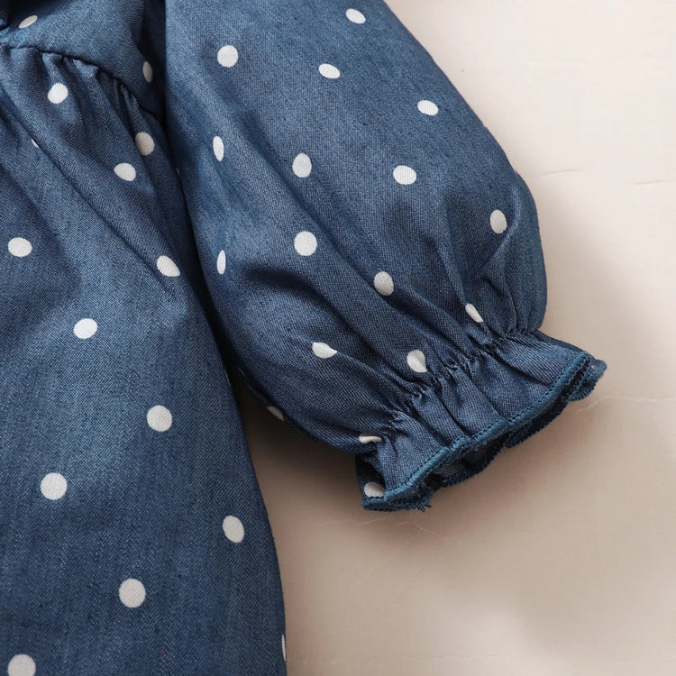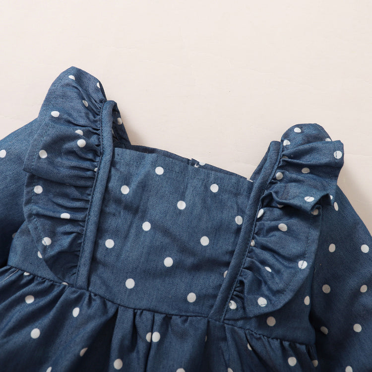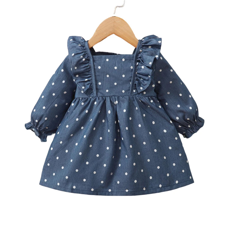 Infant Baby Girl Cute Polka-dot Long Sleeveless Dress Ruffle Blue Dress Toddler Girl Birthday Princess Dresses for 3-24 Months