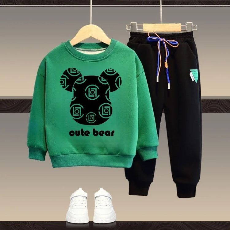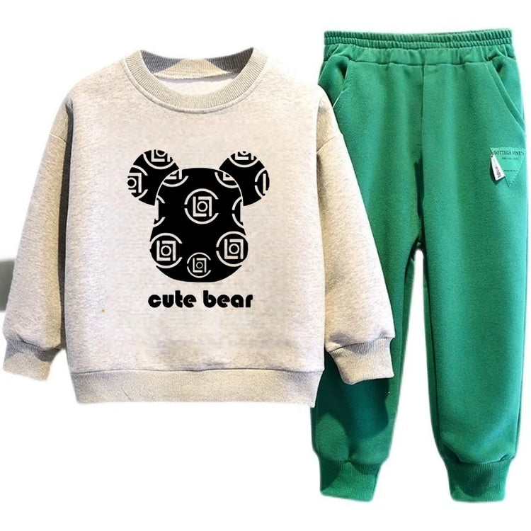 Autumn Children Boy Clothes Set Kid Girls Cartoon Printed Sweatshirts Pullover Top And Pants Suit Long Sleeve Tracksuits